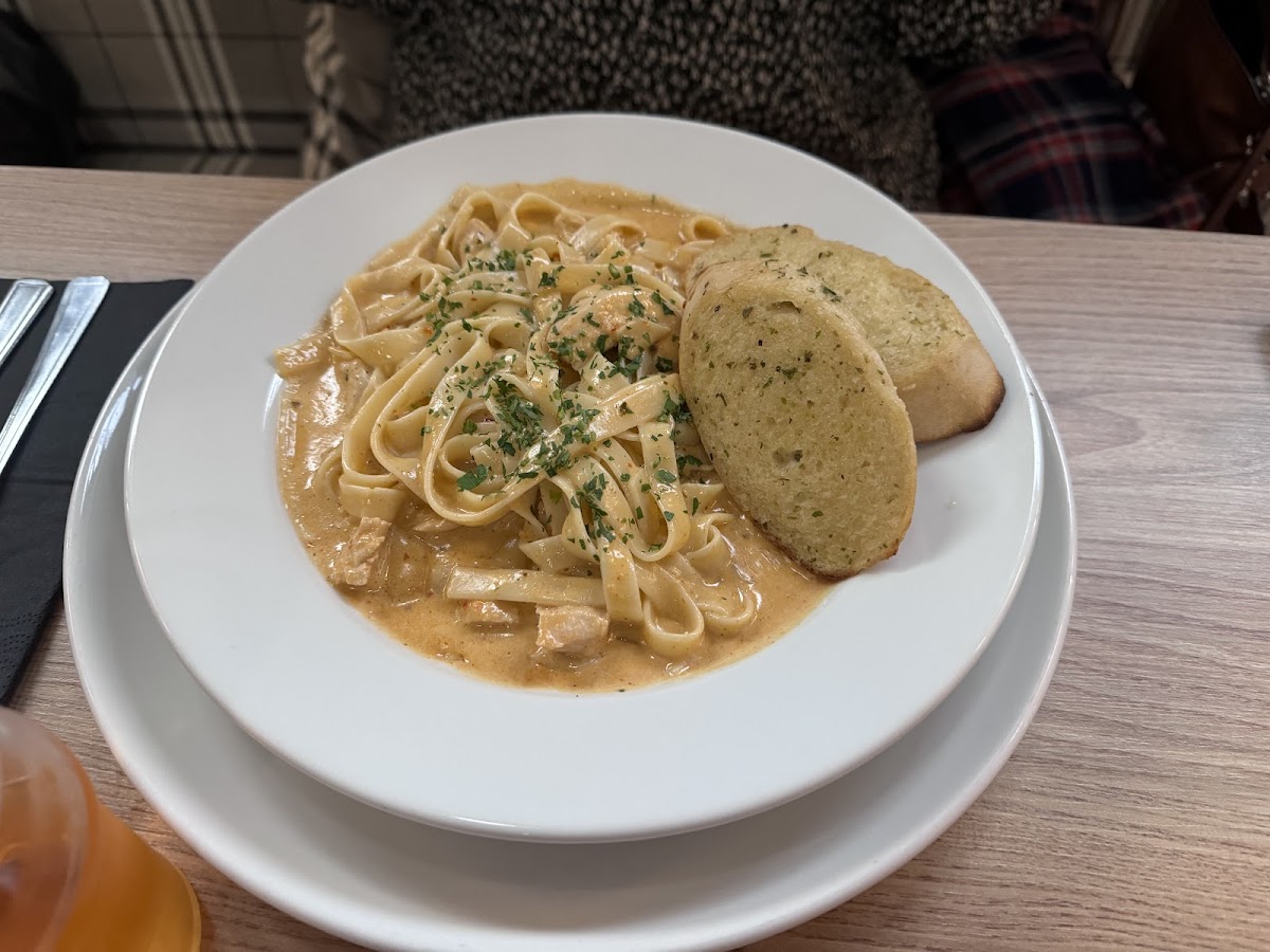 Popped in for a meal and a drink - we both had fish and chips. Old school fried chips and a decent bit of Buckie fish. Would recommend and eat here again. Single staff member and she was really friendly and welcoming.